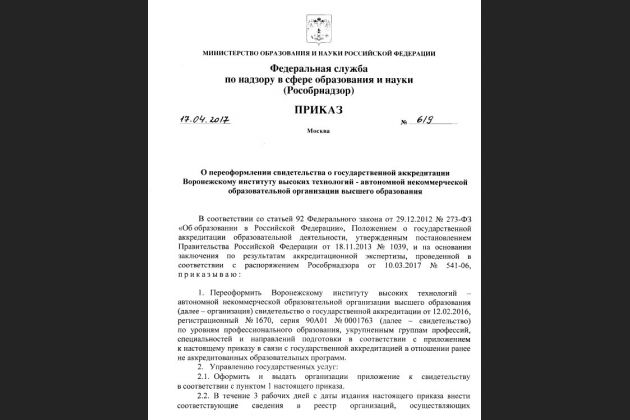 Воронежский институт высоких технологий успешно прошел процедуру аккредитации программ аспирантуры.